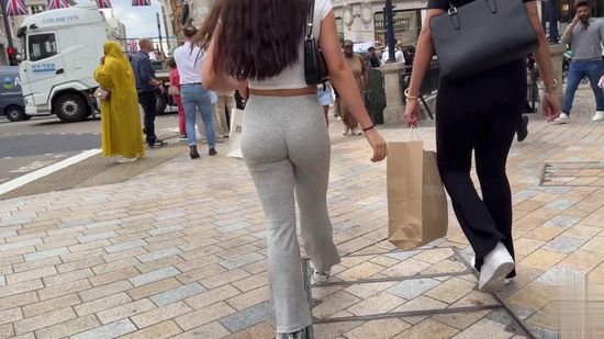 076-Gorgeous Ass Candid Girl In Grey Leggings