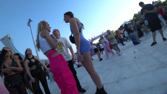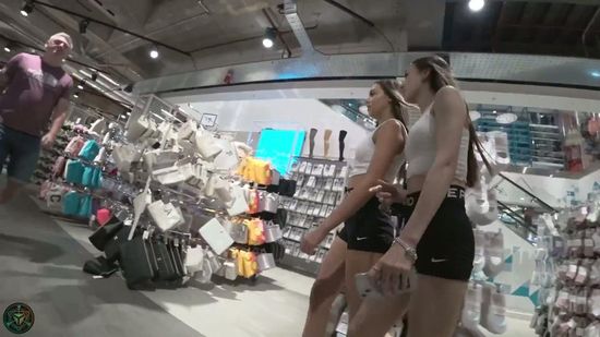 043-NikePro Black Shorts Candid Teen Duo