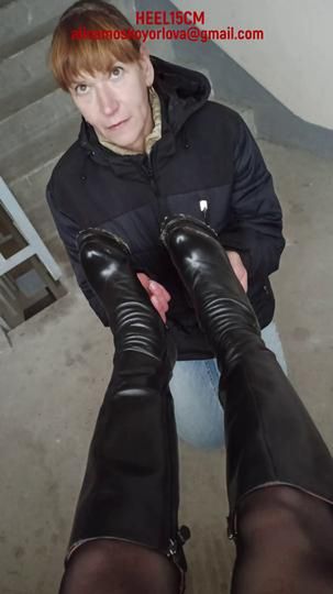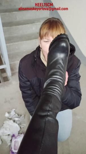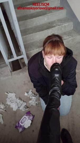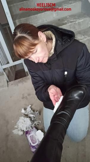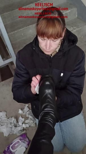 209-HEEL15CM-Boots cleaning at a dirty parking